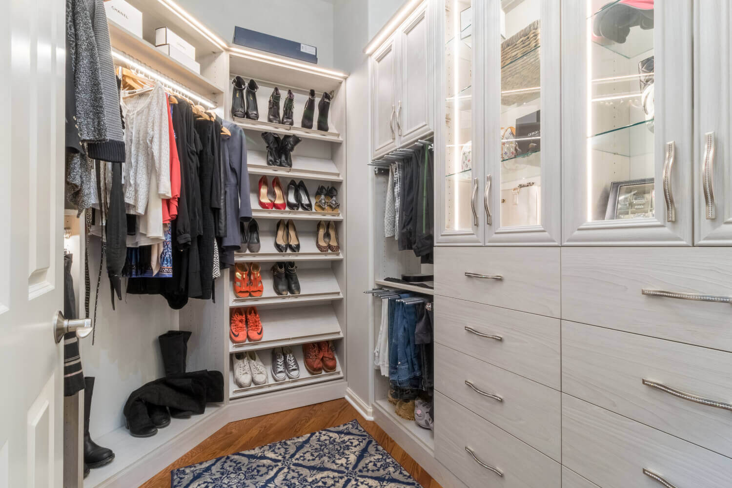 A great starting point is to take inventory of the belongings you want to store in this closet. Since most walk-in closets are in the master bedroom, this probably means all or most of your clothing, shoes, any accessories, and any other belongings you want to keep here. Once you have your inventory list top of mind, closet experts can help you figure out the best layout for your future walk-in closet.